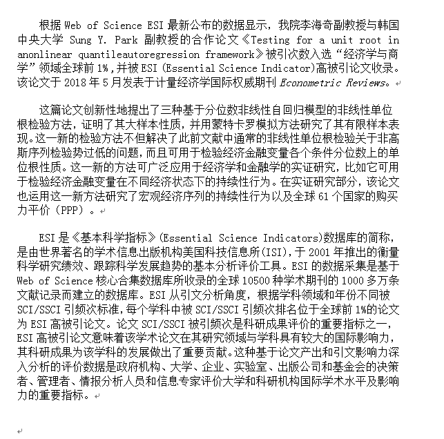 科研动态丨陈汉助理教授与费毅捷助理教授合作论文在Journal of Econometrics发表