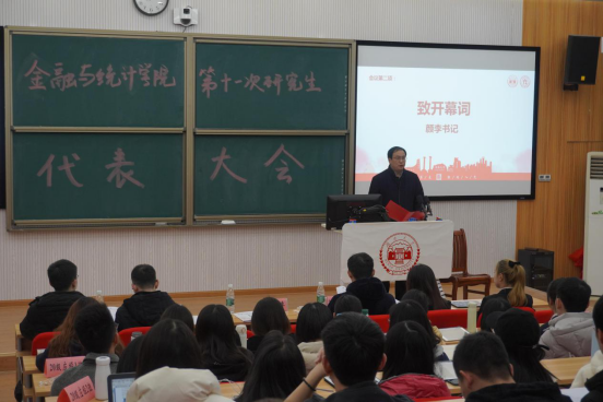 大会在激昂嘹亮的国歌声中拉开帷幕。颜李为本次研代会致辞,他不仅充分肯定了第十届研究生会的工作成果,而且对第十一届研究生会提出新要求,希望研究生会成员牢记习总书记嘱托,认真工作,不负韶华,秉承和发扬历届研会的优良传统和工作作风,打造一个更成熟、更完美的研究生会。