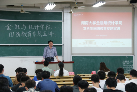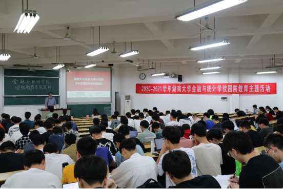 戴部长提到国防离我们并不遥远,从专业上说,我们金统院的同学们都是学习经济金融的,国防经济学也是一门重要的课程,国防开支作为财政支出的一个方面,那么如何把这些国防经费用到刀刃上呢?这就需要懂经济的你们来出谋划策,同时,我们部队中也需要很多懂经济的人才呀,死读书要不得,湖大的传统--经世致用可不能忘。从个人角度上说,我们同学都是成年人,都需要进行兵役登记,这是我们每个公民的义务。我们可以选择参军入伍投身国防一线,有一句话叫做“当兵后悔两年,不当兵后悔一辈子”,但据我所知,当了兵的还真没有后悔的,因为军队是一个大家庭,一个大熔炉,可以有效的锻炼大家的各种能力,参军入伍是一个自我锻炼的过程,也是一段重要的人生经历,部队生活可以强健我们的体魄,培养我们的品格,坚强我们的意志,帮助我们看到更大的世界,看到更大的集体,看到更大的自己。同时,在谋职谋生等众多方面,参军入伍都会对个人今后的学习工作生活有着极大的帮助。我们学校的参军入伍政策也特别好,可以解除大家的后顾之忧,为我们同学的参军之行提供方方面面的帮助。