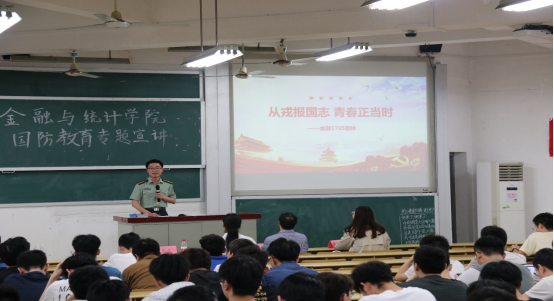 戴部长的宣讲以寄语结束:希望同学们将专业与国防结合起来,关心国家时事;希望我们的金统学子们积极参军,做一位愿意思考、愿意奉献的优秀大学生。
