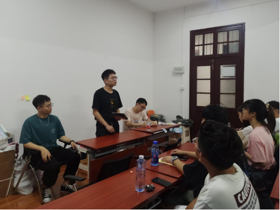 张宇首先对暑期新生助理工作进行总结,具体安排了新生助理在新生报到过程中的工作,确保每一位新生助理和本班迎新志愿者分工明确、每一位新生都能顺利完成入学报到,并特别强调了军训期间的新生安全问题,做到“一个不多,一个不少”。