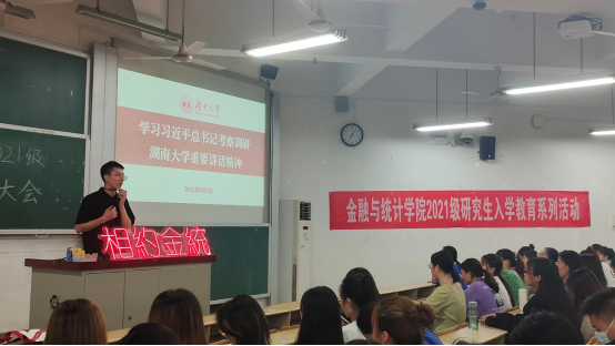 会上,刘斌首先带领2021级全体研究生学习习近平总书记考察调研日韩av 重要讲话精神,并安排部署各班9月开展“重走习总书记考察路”的主题团日活动,希望全体研究生谨记习总书记嘱托和殷切期望,珍惜时光努力学习,掌握知识本领,不负青春,不负韶华。