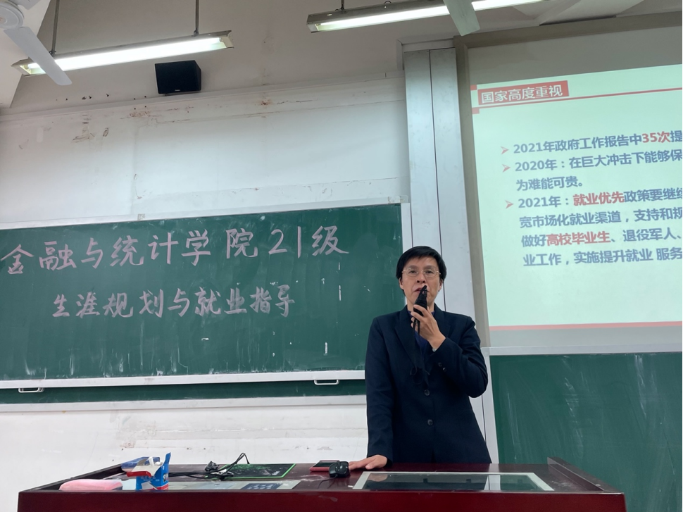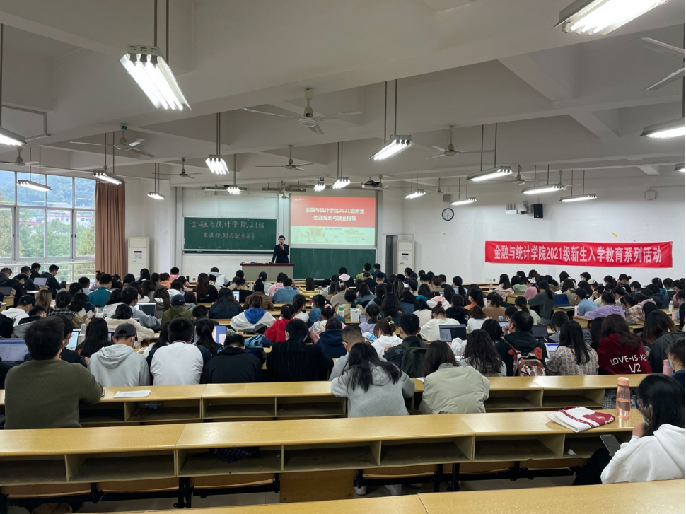 10月22日下午,日韩av 2021级新生职业生涯规划入学教育讲座在财院校区二教502举行,日韩av 招生与就业指导处陈义红老师做职业生涯规划专题报告,学院2021级本科生、研究生参加讲座。