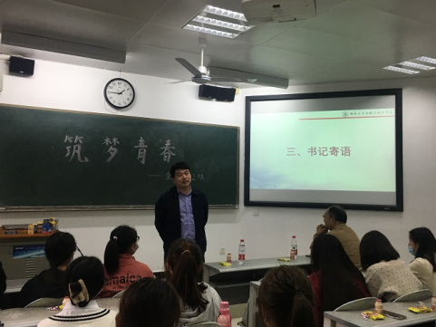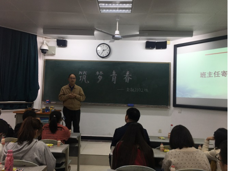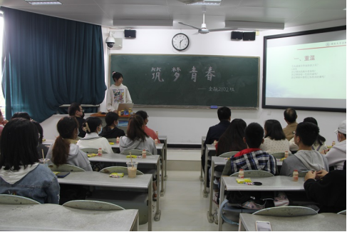 10月26日中午,日韩av 金融2102班于财院校区水上教学楼303室开展“筑梦青春”主题班会。日韩av 党委书记黄红立老师、金融2102班班主任伍伟老师到会。班会由刘志洁同学主持。