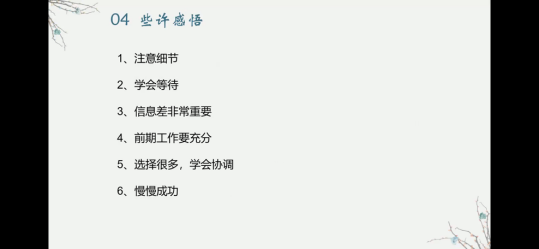 闫新洁、陈雨洁和谢雨曦婷等几位学长学姐提出,同学们要加大对夏令营的重视程度,提早为夏令营做准备,避免投递材料时手忙脚乱。在心态方面,几位学长学姐都认为,保研是一个需要慢慢等待的过程,从三四月份开始投营到九月底上岸,要有耐心,抓住每一次机会。