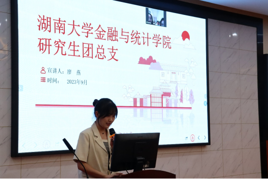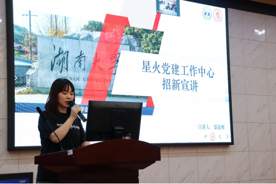 会议第二项为学院各学生组织招新宣讲。星火党建工作中心、研究生团总支、研究生会分别从组织框架、部门工作、部门福利、招新要求等几个方面向同学们进行介绍。
