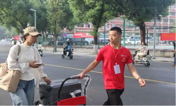 图八志愿者帮助新生搬运行李