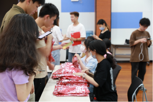 培训内容讲述完之后,向各位志愿者发放迎新过程中需要用到的帽子和袖标。