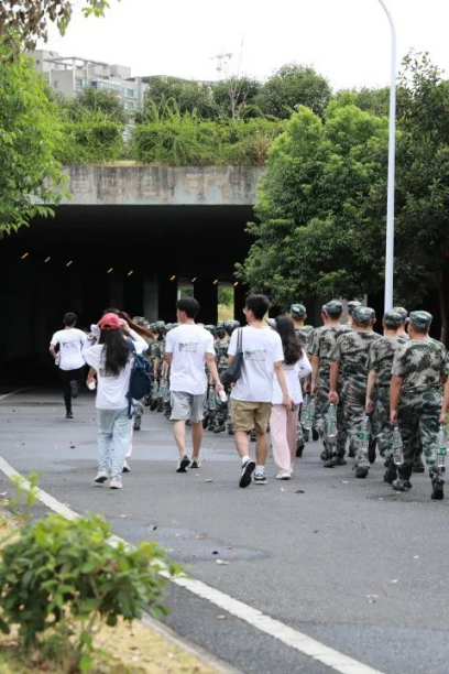 此次拉练全程十公里,历时三个多小时,新生助理全程陪同新生参加拉练。整个队伍整齐有序,展现出新生良好的精神风