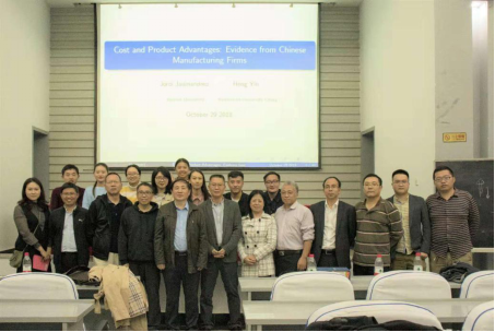讲座开始,彭建刚教授向在场同学介绍了尹恒教授出色的学术经历,同时表达了对于日韩av 双一流高校建设的展望。尹恒教授一上来便开门见山,率先抛出了“企业需求端的产品优势”和“企业供给端的成本优势”两个概念,强调了研究思路可以由可观测的信息到不可观测的信息,从两个维度进行资源配置,直切主题。如尹恒教授所说,一般而言,企业想要成长无非通过两个途径:一个是增加产品方面的优势,另一方面是增加成本方面的优势。而这两个维度的异质性往往很难被识别出来。紧接着,尹恒教授为同学们展示了企业异质性研究方面的重要文献。尽管在这方面有很多优秀的文献,真正分离产品优势和成本优势的文献研究依然十分缺乏。尹恒教授用明确的三点概括了分离二者的意义:一是可以归结企业的产出究竟得益于何种优势,二是可以实现更有针对性的政策和更加合理的资源分配,三是由于异质性的原因会造成估计结果的偏差。之后,尹恒教授向同学们展示了其研究成果,涵盖实现产品优势和成本优势的分离的模型和方法,并以具体的数据和图形展示了其研究结论,以企业改制为例证明了这一研究结论。