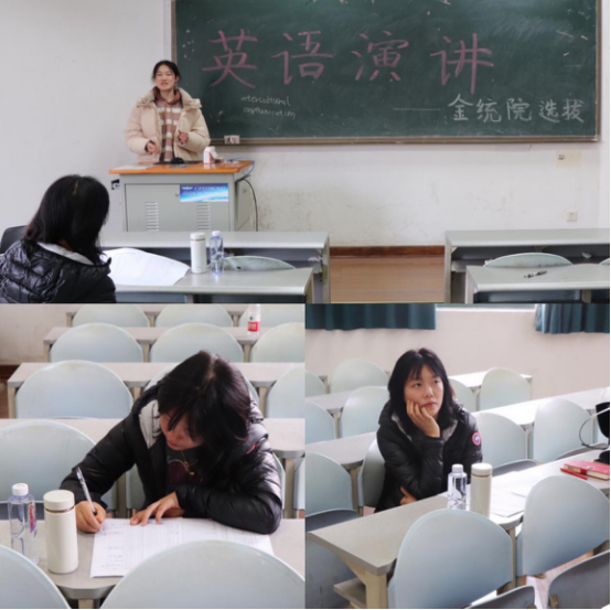 我院一直注重培养学生全面发展,对于此次比赛也是认真准备,鼓励同学们踊跃参与。3月4日中午,我院在财院校区水教304进行演讲比赛选手初选,由陈珂老师担任评委。初选要求每位参赛选手准备不超过2分钟的英语演讲,内容自选,以现场抽签方式决定演讲顺序。面试期间,刘奕伶、肖晗等这六位同学表现优异,从30位选手中脱颖而出,被选为我院代表。经过陈珂老师的悉心指导和赛前的精心准备,他们站上了学校的舞台,大显金统学子风采,并为金统院争得了宝贵的荣誉。