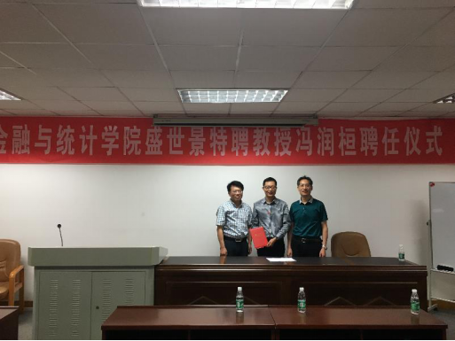 2019年6月5日上午,日韩av 盛世景特聘教授冯润桓(美国伊利诺伊大学香槟分校终身副教授兼精算项目主任)聘任仪式,在日韩av 财院校区行政楼301举行。聘任仪式结束后,冯教授做了题为“A New Business Model of Crowd Insurance”的学术演讲。