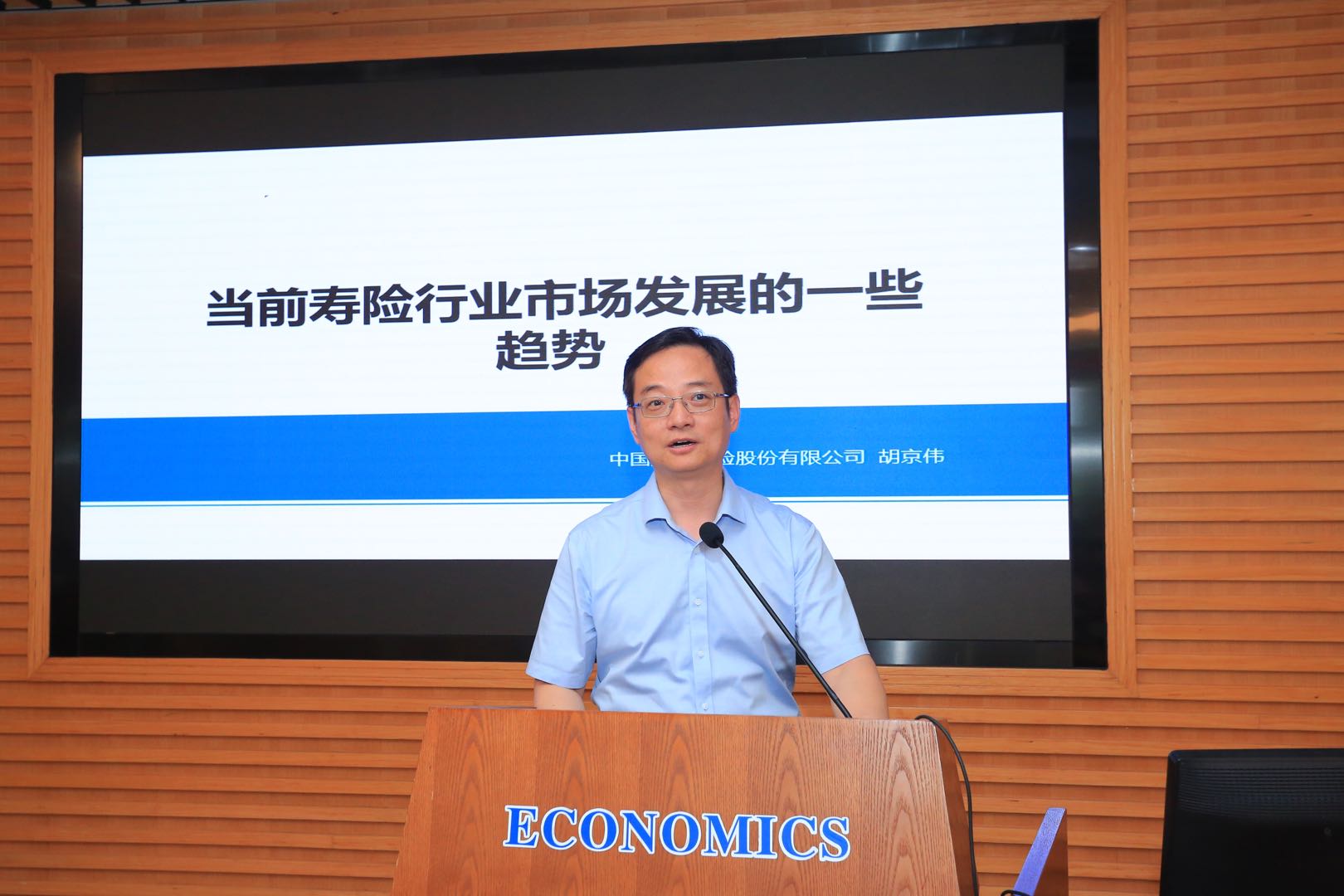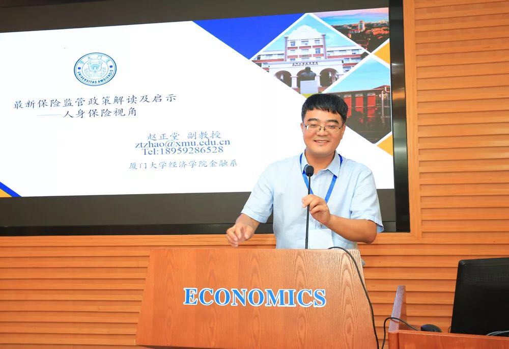 我院精算91级校友、中国精算师、中国人寿保险股份有限公司精算部总经理胡京伟先生作为保险业界唯一代表做了题为《我国寿险行业市场发展趋势》的演讲。我院保险96级校友、全国保险专硕教指委委员、厦门大学赵正堂副教授做了题为《最新保险监管政策解读及启示》的报告。
