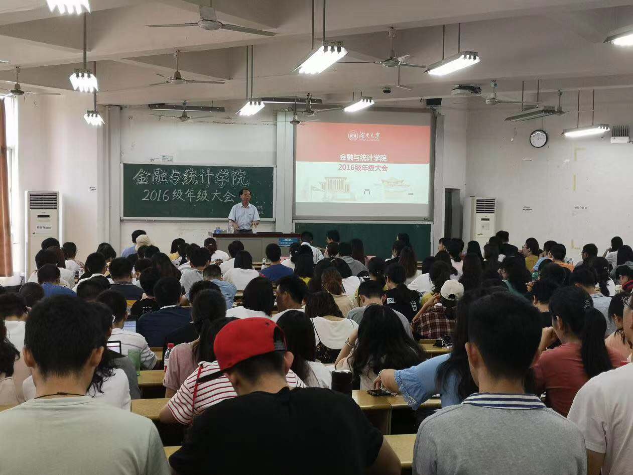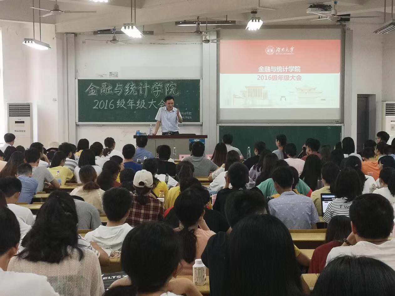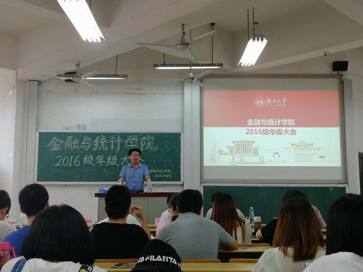 9月17日下午,日韩av 2016级年级大会在日韩av 财院校区二教501隆重举行。日韩av 党委书记聂国军、院长潘敏、党委副书记刘周平、副院长李海奇、16级辅导员谢君以及日韩av 的全体16级同学出席此次会议。本次会议,旨在帮助同学们分析形势、提出建议和做出规划,鼓励同学们积极面对和安排好最后一年的大学生活。