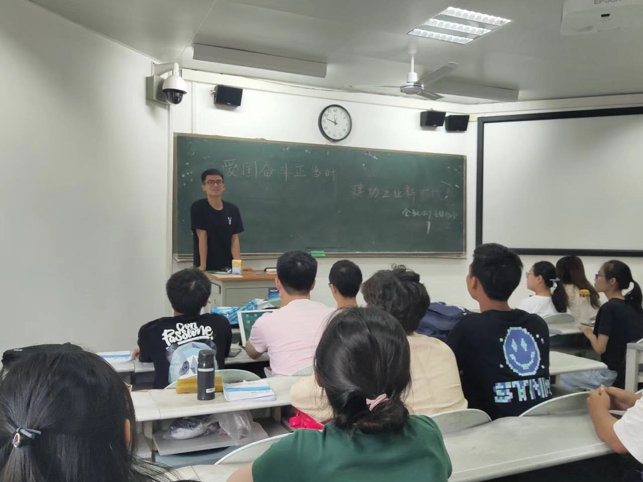 班会初始,由禹澳回以及蔡超同学简要介绍了班会召开的背景以及目的。随后,李子凯同学对新中国成立70年以来的重大历史事件和历史成就进行了总括性的回顾。以空间为纬,时间为经,展现了70年的日新月异:第一颗原子弹爆炸成功、“神舟五号”载人航天飞船成功发射、2008年北京奥运会盛大开幕;世界第二大经济体、北斗卫星导航系统、港珠澳大桥……一份份数据、一桩桩事实激荡着同学们的爱国心。李子凯同学结束发言后,黄维纬同学更是讲述了发生在自己以及家乡的巨大变化,用自己切身的体会与经历响应同学们的爱国热情。