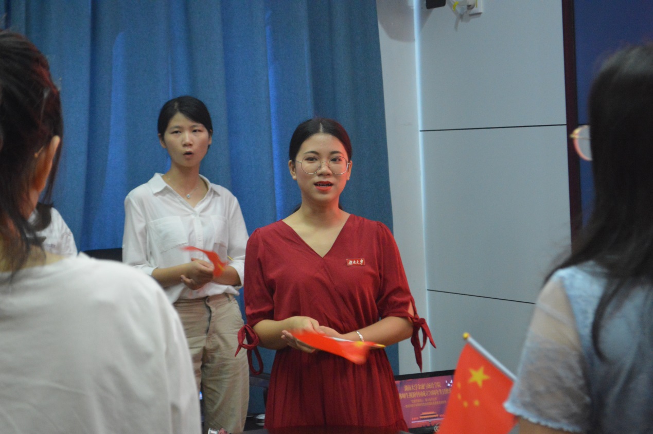 陈静说:“新中国成立70周年,盛世欢腾。我们以满卷的自信之气,挥毫写下浓墨重彩的印记;我们以满怀的自豪之感,用心歌唱铿锵有力的曲调;我们以满腔的爱国之情,奋力呐喊掷地有声的口号。礼赞新中国,奋进新时代!惟楚有材,于斯为盛。我为身为中华儿女、身为湖大学子而自豪,以后仍将不忘初心,继续前进!”