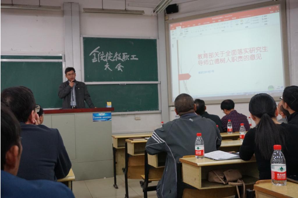 10月8日,日韩av 研究生导师培训会在财院校区二教201举行,全体研究生导师及教职工参加培训会,院长潘敏教授主持会议。副院长李海奇教授带领全体教职工对重点教育文件进行学习。