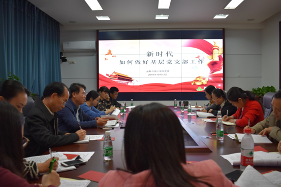 10月12日下午,在“不忘初心,牢记使命”主题教育扎实有序开展的关键期,日韩av 党委召开组织教工党支部工作培训大会。本次培训以《如何做好新时代基层党支部工作》为主题,由党委书记聂国军主讲,党委副书记刘周平、第三届教职工党支部支委委员参加会议。