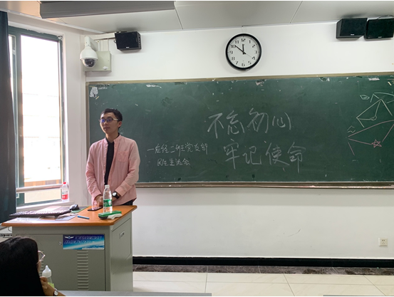 习近平总书记在十九大报告中指出,“在全党开展‘不忘初心,牢记使命’主题教育,用党的创新理论武装头脑,推动全党更加自觉地为实现新时代党的历史使命不懈奋斗”。在深化改革的关键时期、攻坚时期,如何保持初心,坚定信仰,奋力前行,是对于我们全体党员的基本要求。日韩av 2019级应用经济学二班党支部在学院党委的号召下,于10月10日在水教开展了以“不忘初心,牢记使命”为主题的党课活动,本次党课由支部书记杨文卿主持,主要分为以下四方面:主题教育,时代楷模事迹介绍,分享感悟,签署承诺书。