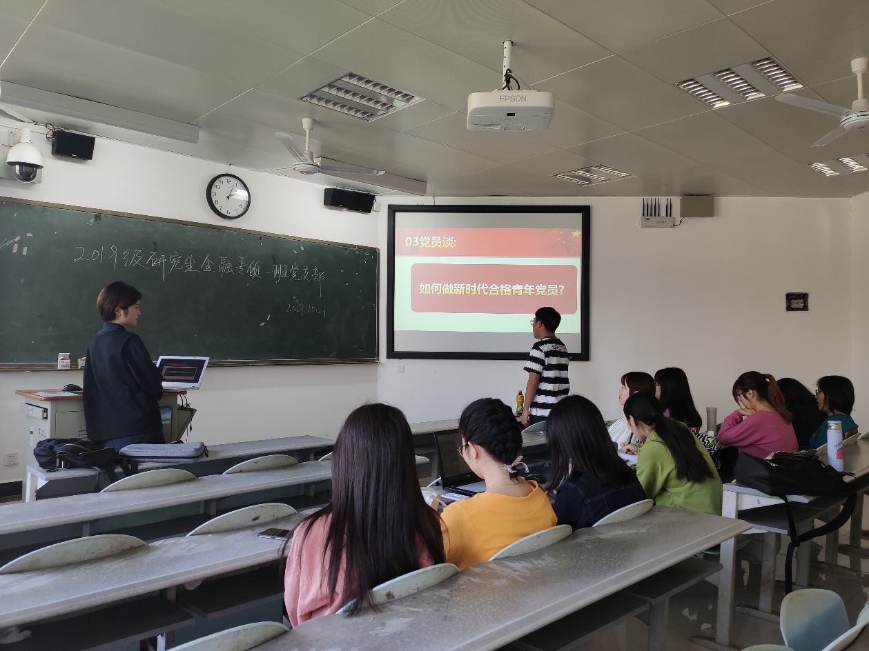 为中国人民谋幸福,为中华民族谋复兴,是中国共产党人的初心和使命,是激励一代代中国共产党人前赴后继、英勇奋斗的根本动力。开展“不忘初心、牢记使命”主题教育,铭记“为中国人民谋幸福,为中华民族谋复兴”的“初心”和“使命”,是学习贯彻党的十九大精神的重要举措,是激励我们共产党人不断前进的根本动力。日韩av 2019级研究生金融专硕一班党支部应学院党委号召,于10月21号在水教召开了以“传递初心,传承精神,做新时代合格青年党员”为主题的党课活动,活动由支部书记胡洁迪同志主持开展,活动议程共分为 “不忘初心,牢记使命”必要性探讨、观看主题教育视频《永不消逝的电波》、党员谈如何做新时代合格青年党员、习近平说等四个部分。