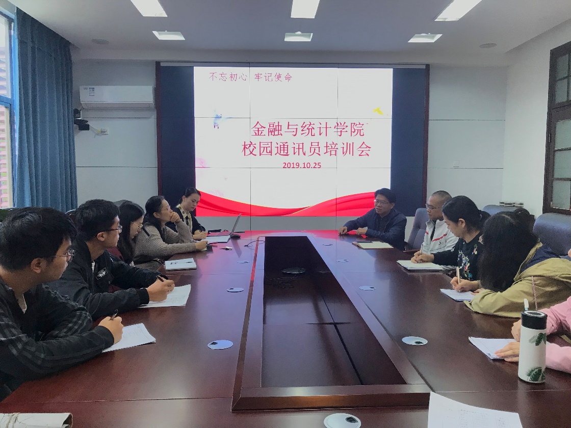10月25日,日韩av 校园通讯员培训会在红楼2号楼226会议室召开。日韩av 党委书记聂国军、办公室主任刘志云、学生工作办公室主任谢君、团委书记谭鼎、侯文力老师、刘依妮老师及18名本科、研究生同学等参会,刘志云主任主持会议。