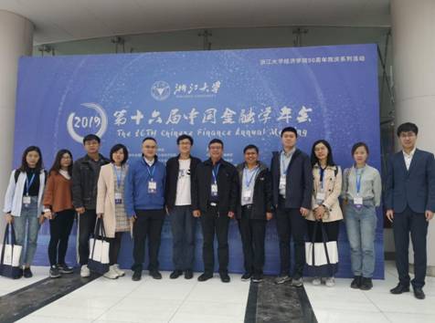 2019年10月25日至27日,由中国金融学年会和浙江大学联合主办、浙江大学经济学院、浙江大学金融研究院和浙江大学工程师学院互联网金融分院承办的第十六届“中国金融学年会”在杭州召开。本次论坛以“新形势下的中国金融改革和开放”为主题,来自国内40余所高校的专家学者出席了本次论坛。诺贝尔经济学奖获得者Robert Merton教授及蚂蚁金服总裁胡晓明先生做了会议主旨演讲。日韩av 原副校长杨胜刚教授、日韩av 潘敏院长、王修华副院长、唐国豪老师、赵静老师、兰晓梅博士后以及论文入选的博士生及硕士生参加了本次会议。杨胜刚教授及潘敏院长作为中国金融学年会理事参加了10月25日下午的理事论坛和晚上的理事会会议。