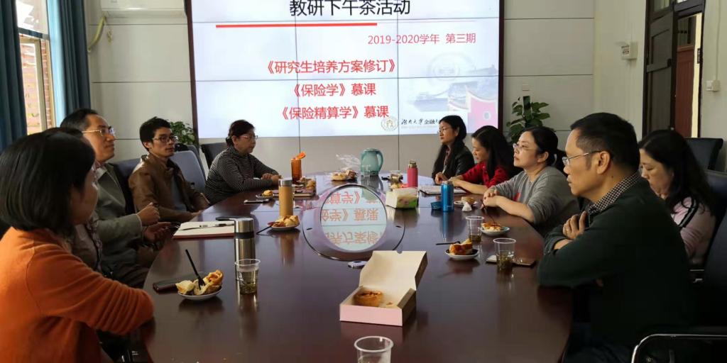 参观完旧址,大家又回到学校,接着进行教研下午茶活动,以实际行动投入革命工作当中。下午茶的主题有研究生培养方案的修订、保险学及精算学慕课建设等。
