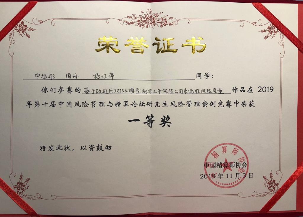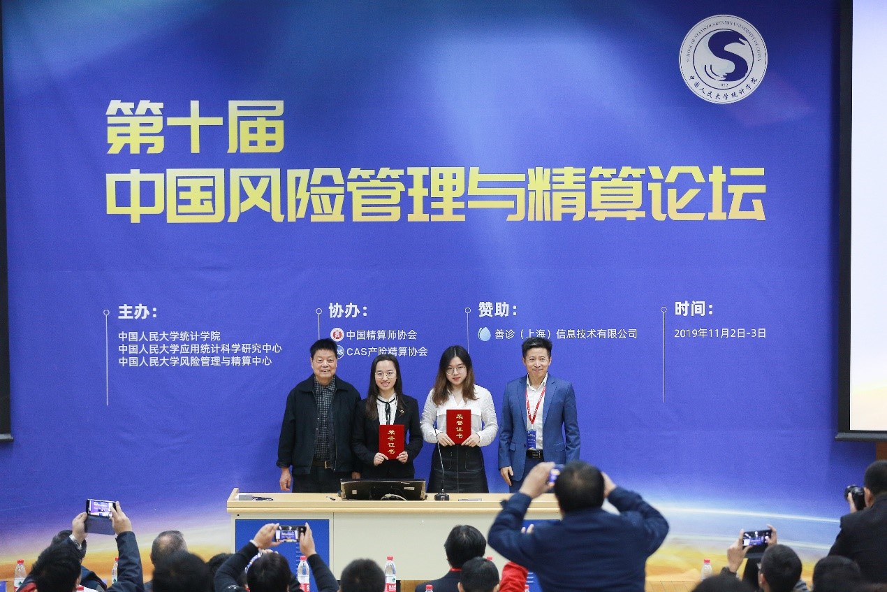 由中国人民大学统计学院、中国人民大学应用统计科学研究中心、中国人民大学风险管理与精算中心主办,中国精算师协会、北美产险精算师协会(CAS)协办的"第十届中国风险管理与精算论坛”于2019年11月2日- -3日在中国人民大学隆重举行。我院保险系研究生申旭彤、周丹、杨江萍参会。