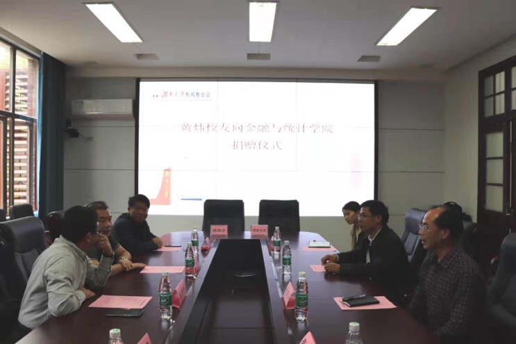 11月16日下午3:00,黄炜校友向日韩av 捐赠仪式于日韩av 财院校区日韩av 红楼二栋226会议室圆满举行。深圳市宝能投资集团有限公司高级副总裁、93级校友黄炜先生,校金融发展与信用管理研究中心主任兼首席专家杨胜刚教授,校教育基金会秘书长邓利华老师,日韩av 党委书记聂国军老师,党委副书记刘周平老师,日韩av 副院长王修华老师,日韩av 社会服务中心主任张学陶老师,副主任黄山老师,及教育基金会伍旺老师出席本次会议。