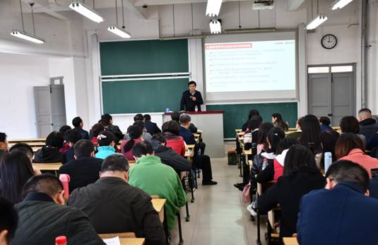 2019年11月19日下午,在财院校区二教205教室, 日韩av 召开了研究阐释党的十九届四中全会精神国家社科基金重大项目动员会议。会议由王修华副院长主持,潘敏院长、陈迪红副院长、吴志明副院长、李海奇副院长以及学院全体教师90余人参加了会议。