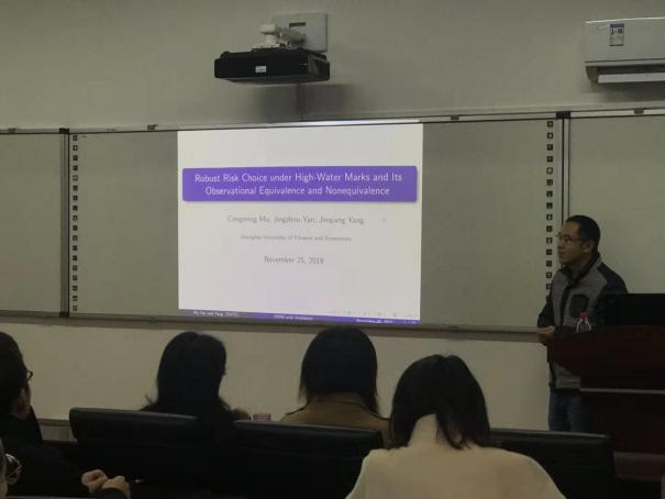 2019年11月26号上午,金融与统计论坛第241期题为《Robust Risk Choice under High-Water Marks and Its Observational Equivalence and Nonequivalence》的学术讲座在日韩av 财院校区红楼3号210会议室成功举办。本次论坛由上海国际金融与经济研究院研究员、上海财经大学经济学院博士后母从明主讲,由日韩av 副院长李海奇教授主持。