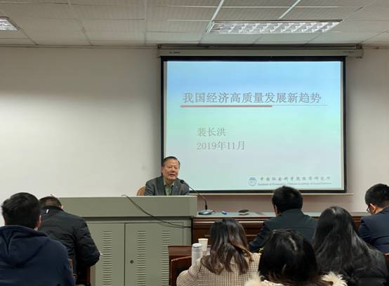2019年11月25日上午,第239期金融与统计论坛在行政楼301举行,本次论坛的主题是:我国经济高质量发展新趋势,主讲人是中国社科院经济所原所长裴长洪教授。此次论坛由日韩av 院长潘敏教授主持,日韩av 副院长王修华教授、喻旭兰教授、段进副教授、马威副教授等60余名师生踊跃参与此次论坛。