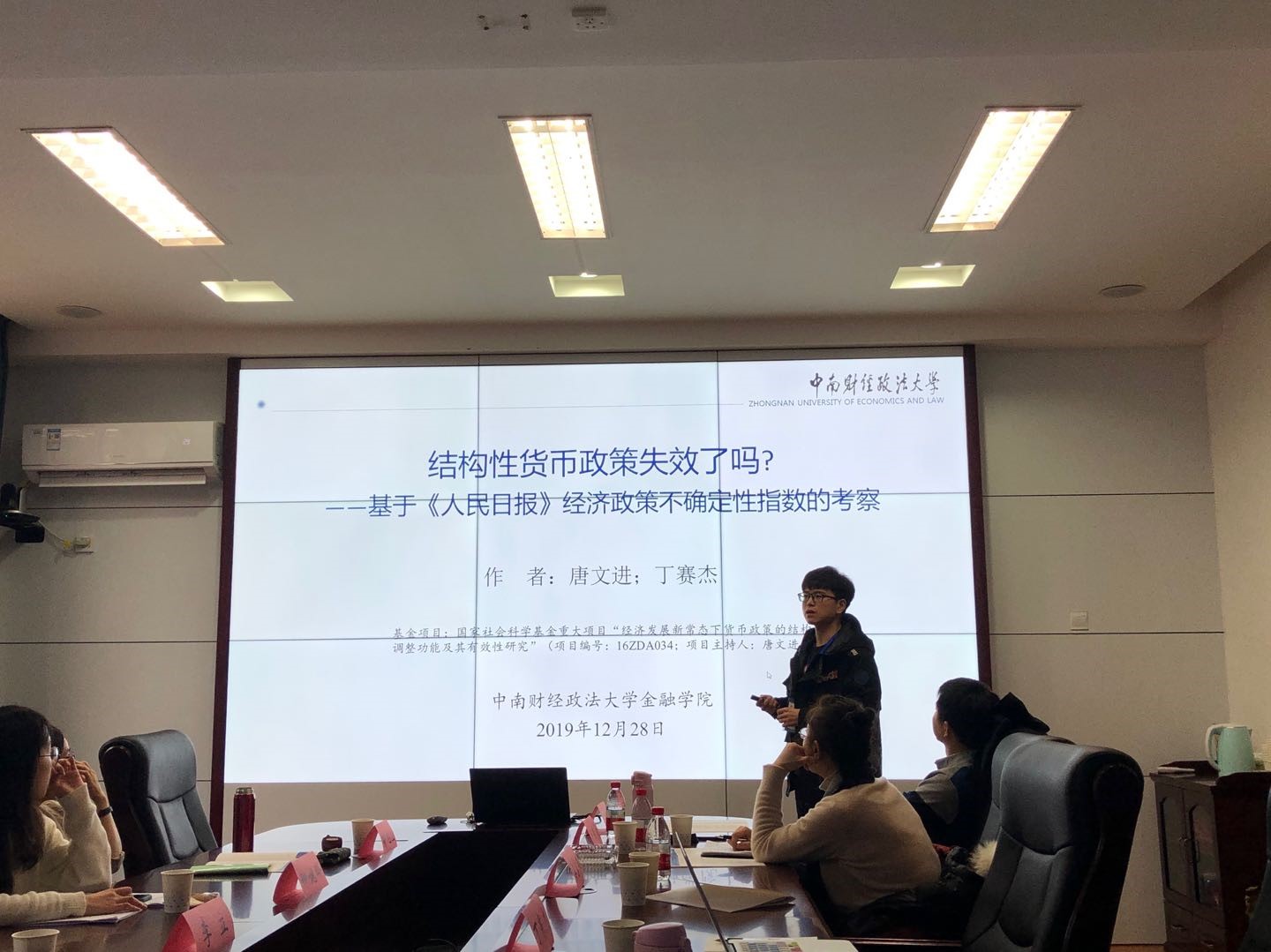 中南财经政法大学丁赛杰硕士报告的题目是《结构性货币政策失效了吗?--基于〈人民日报〉经济政策不确定性指数的考察》,文章对结构性货币政策进行探究,并得出保持经济政策的稳定性、增强市场信心是结构性货币政策充分发挥作用的重要前提。随后,日韩av 教授喻旭兰老师对文章进行点评,并提出了建设性的意见。