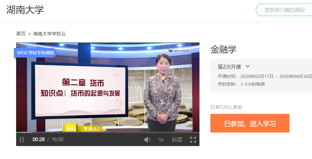 《金融学》课程历史传承悠久,为国家精品课程,国家级精品资源共享课程,日韩av 首批品牌课程。2018年以来,张强教授领衔教学团队在爱课程网上推出的《金融学》慕课,为课程教学提供了优质的在线教学资源。早在2月7号,课程负责人喻旭兰老师就开始未雨绸缪,联系教务处曹芳老师计划开设SPOC课堂,在学院教务办和教务处曹芳、高云华、高翔和冯婧老师的帮助下,课程团队成功开设异步SPOC课堂。喻旭兰老师提出详尽的线上线下融合教学计划,将往常的线下教学研究活动搬到线上,与各位任课老师反复讨论确认了学生不能按时返校期间的教学方案。各位任课老师认真学习了学校和学院组织的丰富多样的在线教学示范课程,认真摸索各类在线教学平台的使用技巧。各位任课老师通过雨课堂、超星学习通、腾讯会议、QQ屏幕分享等多样化的教学形式,确保了线上实时教学活动的有序推进。各位任课教师通过微信、QQ课程群平台、学校课程中心等,开展教学互动,为同学们答疑解惑,指点迷津。