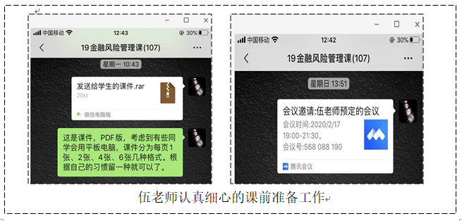 我院伍伟副教授,自得知我校“停课不停教与学,不停学“的部署之后,结合院校的力量与我院研究生教师团队的经验,采用了“腾讯会议+微信群互动”的方式,为89位研究生规划了《金融风险管理》的学习方案。