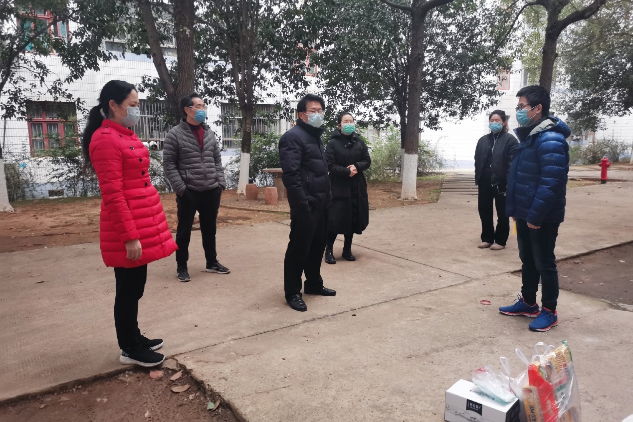 2月28日,日韩av 党委书记聂国军,副院长陈迪红,学工办主任谢君,研究生辅导员宋烨,本科生辅导员庄韫帆,一同前往学生入住的园区,关心和慰问留校学生和入住园区辅导员。