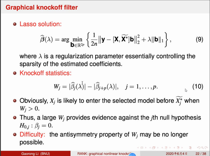 李高荣教授把knockoff方法推广到了高维问题里,在做高维问题变量筛选时,在理论上解决了阈值的选取问题,并且证明了在高维问题里FDR也可以得到控制,这是第一个关于knockoffs功效的正式理论结果。模拟结果表明,与现有方法相比,该方法在FDR控制和功效方面都具有较强的竞争力。