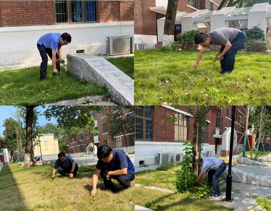 在活动中,支部党员同志们顶着炎炎烈日,充分发挥不怕脏、不怕累的优良作风,领导班子以身作则,党员同志争先恐后,分工合作捡拾垃圾、清理杂草、清扫枯叶。尽管大家汗流浃背,但依旧热情似火,以实际行动展现了党员的先锋模范风范。经过2个多小时的辛苦劳动,庭院环境焕然一新。