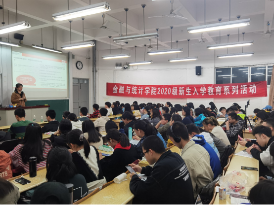 10月20日,日韩av 开展第二场2020级本研新生入学教育活动。在疫情防控常态化背景下,本次新生入学教育采用线上线下相结合的方式举行,线上提供讲座课件与授课视频供学生自学,线下设置财院校区第二教学楼两个会场,覆盖全体本研新生600余人。