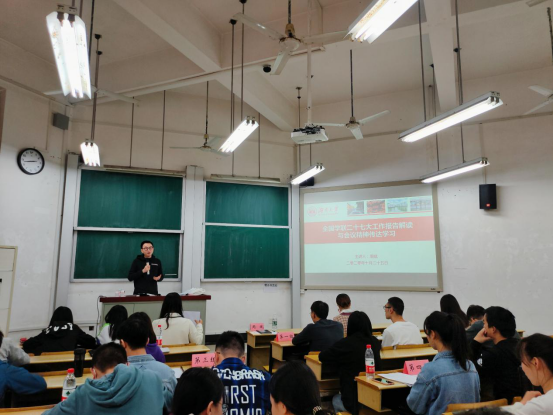 25日晚,《公文写作能力提升系列讲座之领导讲话稿写作技巧讲解——以习近平总书记贺信、国务院团中央中国科协代表致辞为例》专题培训报告在财院校区二教101开讲,周斌从应用文与讲话稿的定义特点、写作常见问题、写作技巧指导作了分享交流,讲解内容清晰易懂,同学们收获良多。最后,周斌领学领唱了《国际歌》和《光荣啊!中国共青团》两首红色歌曲,伴随着全体研究生骨干慷慨激昂、奋进向上的歌声,日韩av 第一期研究生骨干培训班宣告结业。