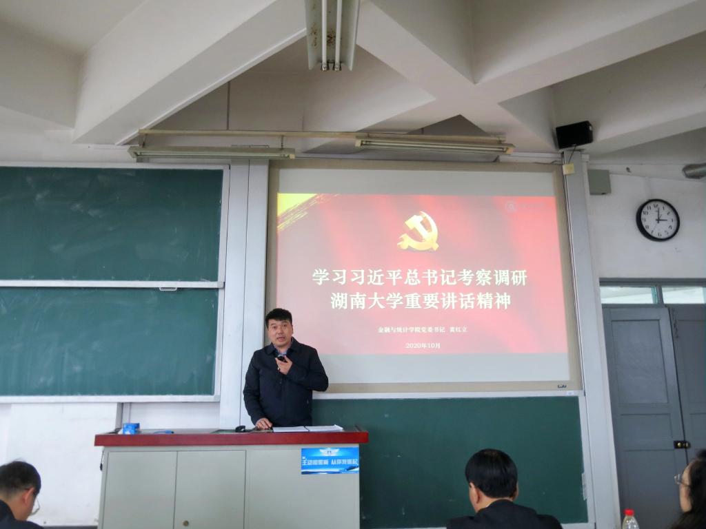 10月19日下午,日韩av 召开“习近平总书记考察日韩av 岳麓书院重要讲话精神”专题学习会,学院党委书记黄红立宣讲习近平总书记考察调研日韩av 时的重要讲话精神,全院教职工及学生代表参会学习。会议由副院长王修华主持。