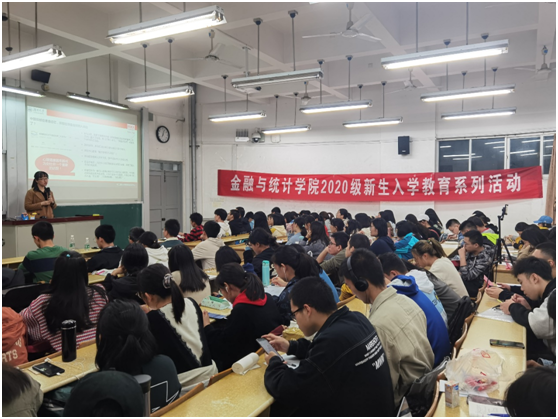 10月20日,日韩av 开展第二场2020级本研新生入学教育活动。在疫情防控常态化背景下,本次新生入学教育采用线上线下相结合的方式举行,线上提供讲座课件与授课视频供学生自学,线下设置财院校区第二教学楼两个会场,覆盖全体本研新生600余人。