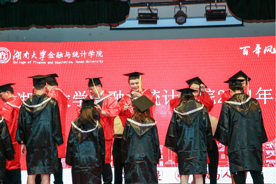 潘敏作题为《开拓、传承、感恩》的讲话。他首先代表学院向毕业生表示最热烈的祝贺并致以最美好的祝愿,并对毕业生提出三点期望:第一,勇于担当,做新时代的开拓者;第二,勇立潮头,做金融黄埔的传承者;第三,永远学习,做新时代生活的感恩者。他希望同学们秉持“实事求是,敢为人先”的湖大精神,去品味人生百味的感悟和感动,去收获更多的成功和幸福。衷心祝福大家鹏程万里,万事胜意!