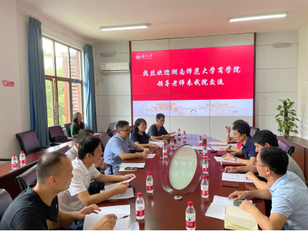 7月9日上午,湖南师范大学商学院副院长曹虹剑教授、教育部金融学类教学指导委员会委员欧阳资生教授等8人来我院进行交流访问。我院副院长张宁、应用金融系主任马勇、货币金融系主任喻旭兰和副主任王忠生等参加交流座谈,会议就人才培养、课程建设、教材建设、科研项目培育等事宜进行了深入探讨。