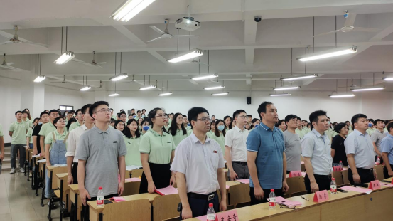 典礼最后,全体师生奏唱校歌,开学典礼至此结束。