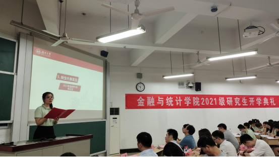 9月6日上午,日韩av 2021级研究生开学典礼在财院校区阶二教502举行。日韩av 院长潘敏、党委书记黄红立、党委副书记颜李、副院长王修华、副院长李海奇、副院长张宁、研究生培养办、学工办老师及教师代表出席,典礼由学院副院长吴志明主持。