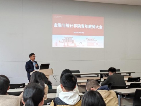 2021年10月19日,日韩av 青年教师大会暨2022年国家基金申报动员会在财院校区老食堂二楼报告厅举行。会议由王修华副院长主持,院长潘敏、党委书记黄红立及全体45岁以下青年教师及辅导员等参加会议。