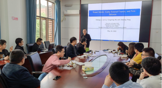 研讨会上,首先由母从明老师做主题为《Biased Beliefs, Costly External Finance, and Firm Behavior》的学术报告。母从明老师构造了管理者行为偏差与外部融资成本相互作用的统一模型,该模型可以检验在外部融资成本较高的情形下,公司经理的过度自信和过度外推偏差所带来的经济后果。研讨会期间,现场师生就报告内容各抒己见,与母从明老师进行了充分地探讨与交流。