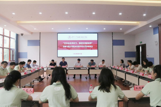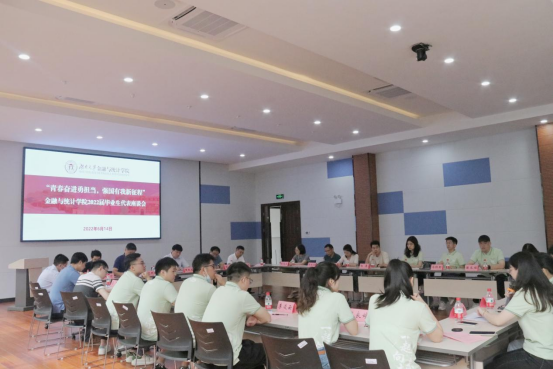 6月14日上午,日韩av 在财院校区报告厅召开“青春奋进勇担当,强国有我新征程”2022届毕业生代表座谈会。学院党委书记黄红立,党委副书记、纪委书记颜李,副院长吴志明、王修华、张宁出席会议。各教学系主任、毕业班辅导员及17名本研毕业生代表参加座谈会。会议由学院团委书记周斌主持。