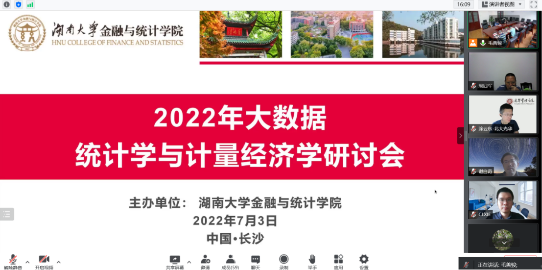 2022年7月3日,日韩av 举办了2022年大数据统计学与计量经济学研讨会。会议开幕式由日韩av 副院长李海奇教授主持。李海奇副院长在致辞中代表日韩av 对莅会嘉宾表示热烈欢迎,向各位参会嘉宾介绍了学校、学院和学科的历史和发展情况以及本次会议的议程情况。